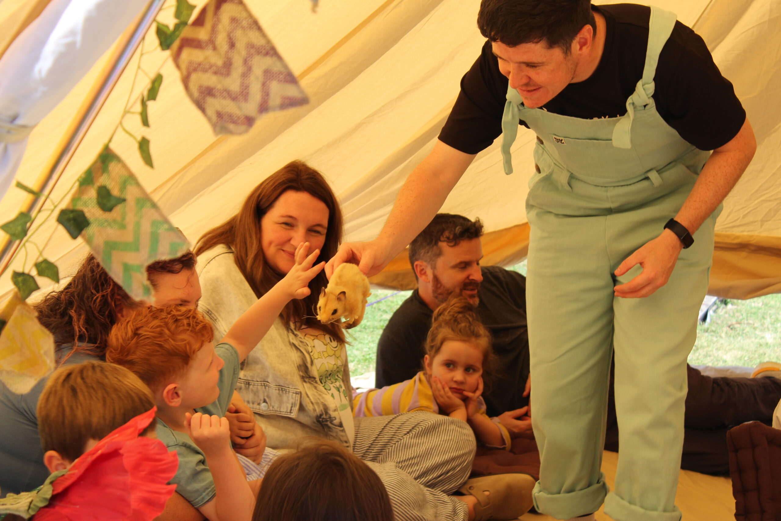We tell stories – but not in the sit down and read a book style. We immerse families into magical worlds and celebrate the possibilities of the imagination. Our work is high energy, physical and involves lots of audience participation. We specialise in entertaining families, so big kids as well as the small ones.